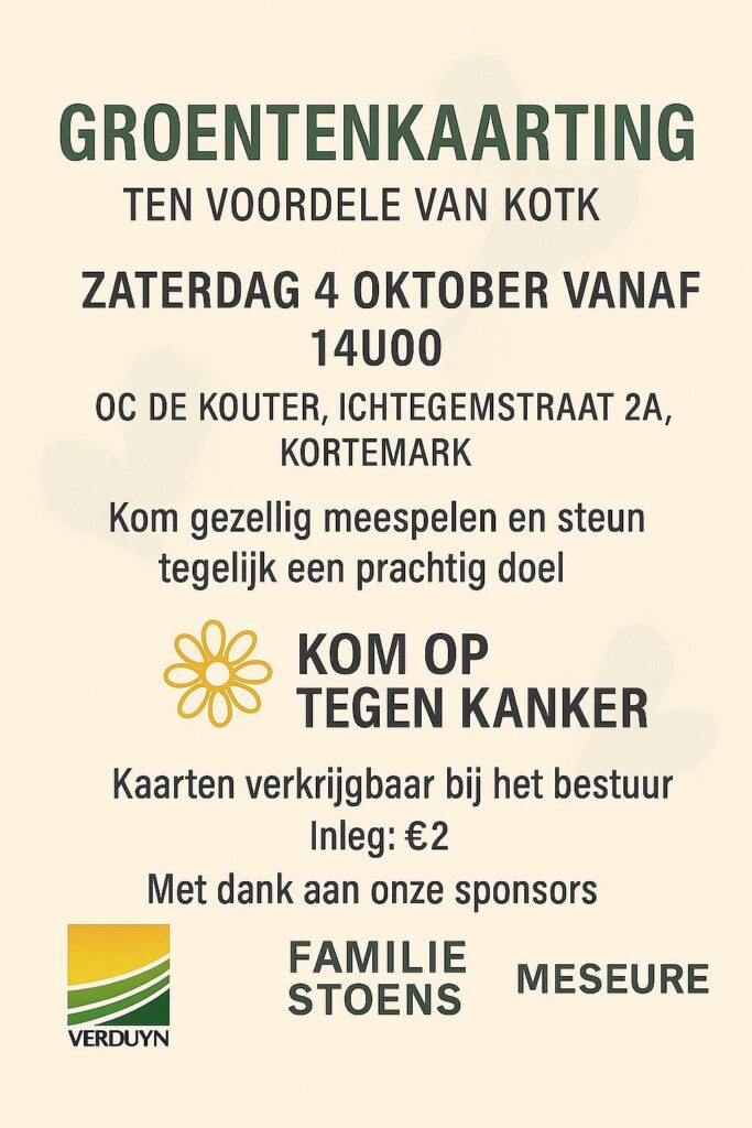 Home2025november23GROENTEKAARTING 4 OKTOBER 2025 GROENTEKAARTING 4 OKTOBER 2025 / Evenementen / Door kortemark komtop